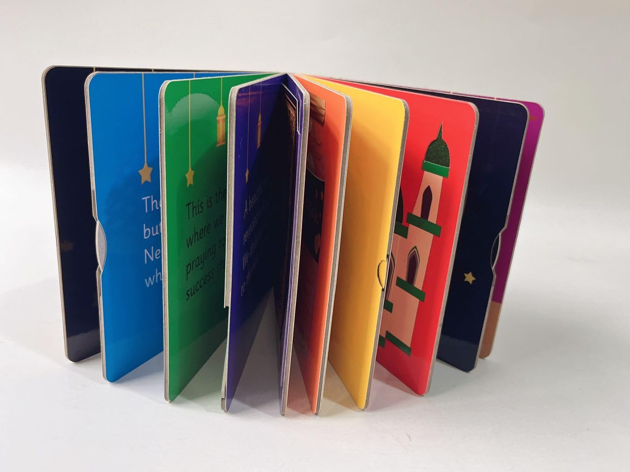 Discover the magic of Ramadan with this delightful interactive board book that engages young readers through multiple sensory experiences. Each beautifully illustrated page features exciting elements that children can touch, feel, lift, slide, and rotate, making learning about this special Islamic month both fun and memorable. The vibrant artwork showcases festive Ramadan scenes with colourful lanterns, suhoor and iftar meals and staple acts of ibadah. Little hands will stay busy exploring different textures and interactive features whilst learning about the joyous traditions of Ramadan.