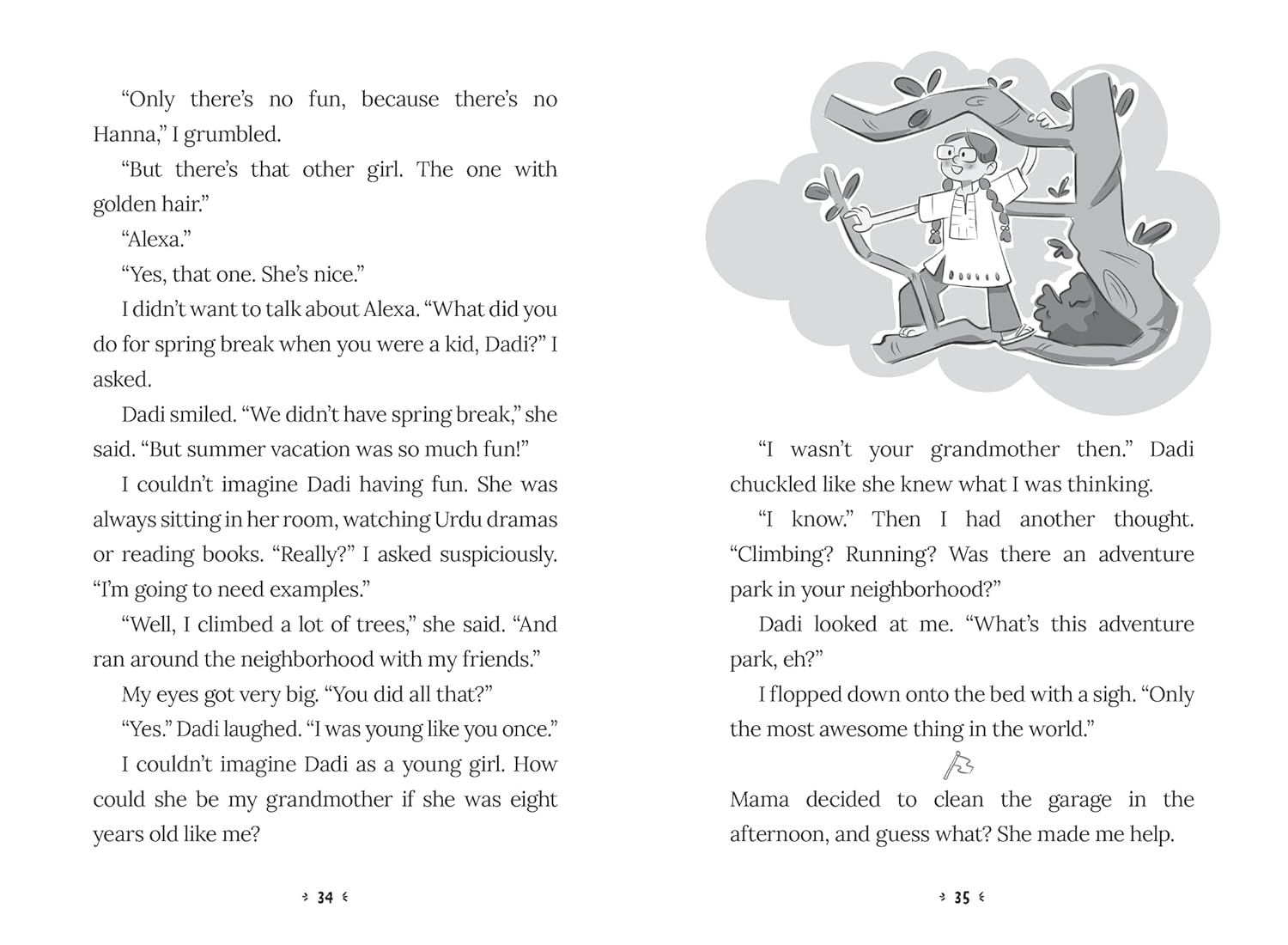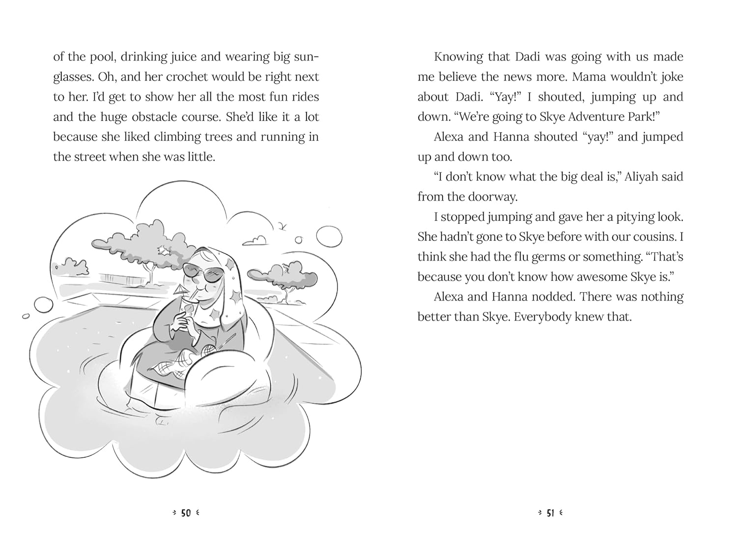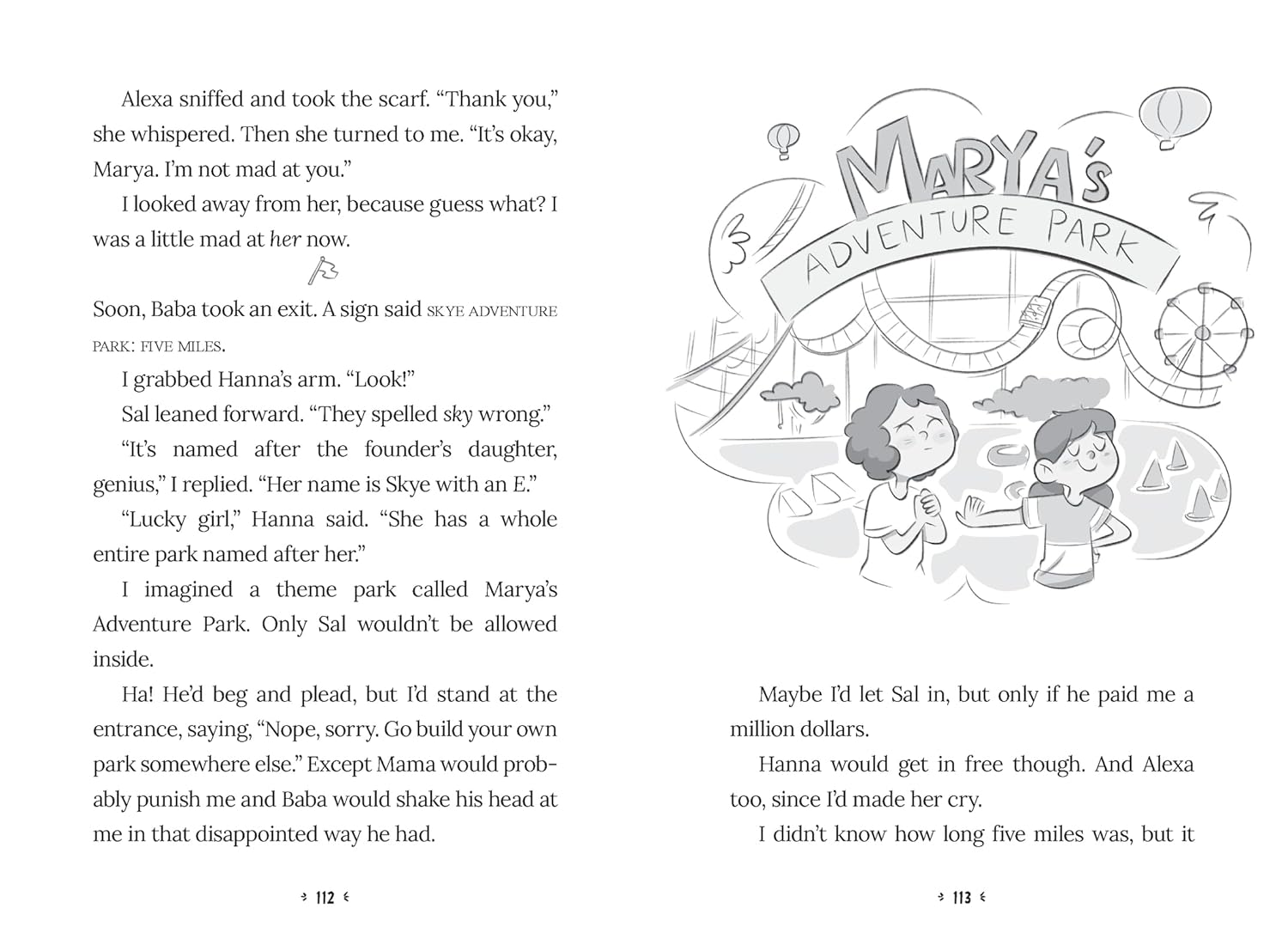 This charming chapter book series by Saadia Faruqi and Ani Bushry follows a Pakistani American third-grader whose plans may backfire but whose persistence and heart are inspiring Spring break is finally here, and Marya could not be more excited. This year she, Hanna, and Alexa are going to Skye Adventure Park—the coolest theme park around! Skye Adventure Park is huge and has so many things to do. They have to go to the water park (obviously) and avoid boring rides like the Ferris wheel.