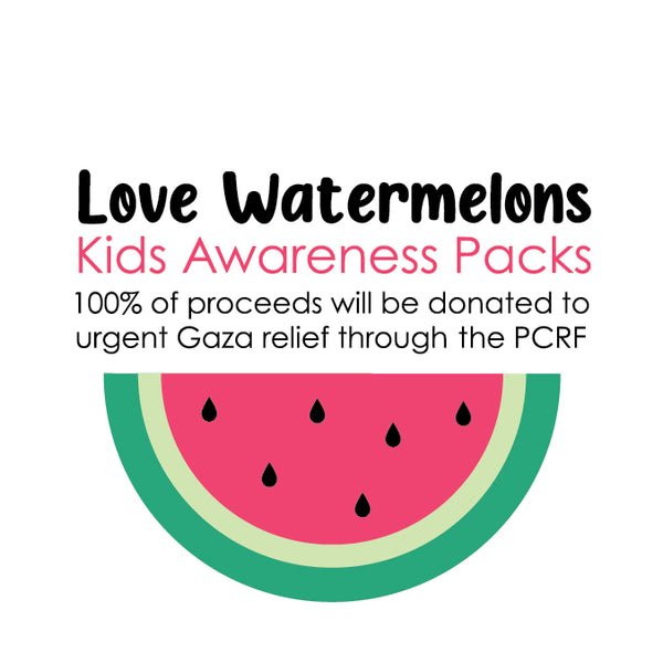 100% of proceeds from these ‘Love Watermelons’ Kids Awareness Pack will be donated to One Nation for urgent relief in Gaza.